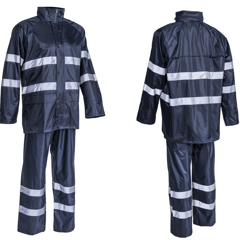 Completo giacca pantalone impermeabile spalmato in PVC - bande retroriflettenti alta visibilità
