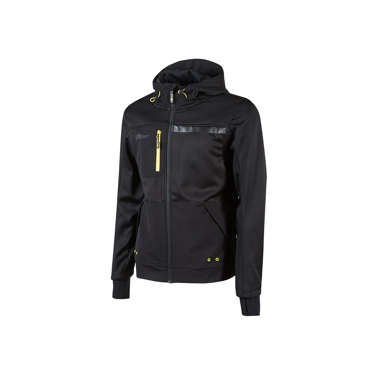 La banda reflex sul petto latto sinistro e sul cappuccio garantisce visibilità e arricchisce il design, unitamente alla stampa reflective del logo “U-Power” sul lato destro del petto.
