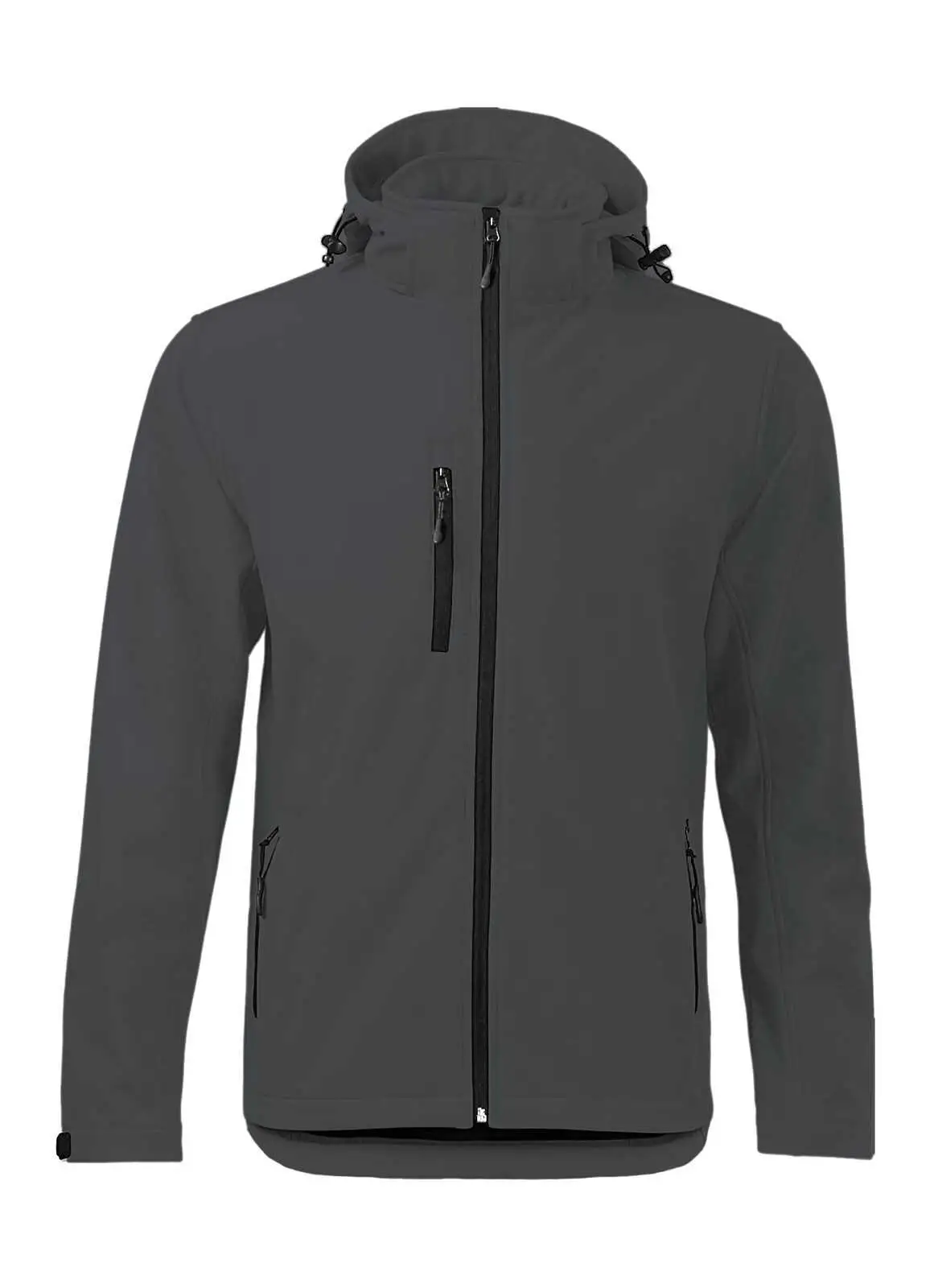 DETTAGLI: 94% poliestere, 6% elastan. Giacca in softshell a 3 strati, cappuccio con fermi in plastica, occhielli e cordino neri. Due tasche laterali con zip, una taschino sul petto con zip, tirazip in plastica, zip interna lato cuore per la personalizzazione, polsini regolabili con velcro, interno in micropile. Bordo inferiore con cordino regolabile con fermi.Impermeabilità 8000 mm, traspirabilità 1000 gr/m2. Etichetta strappabile.