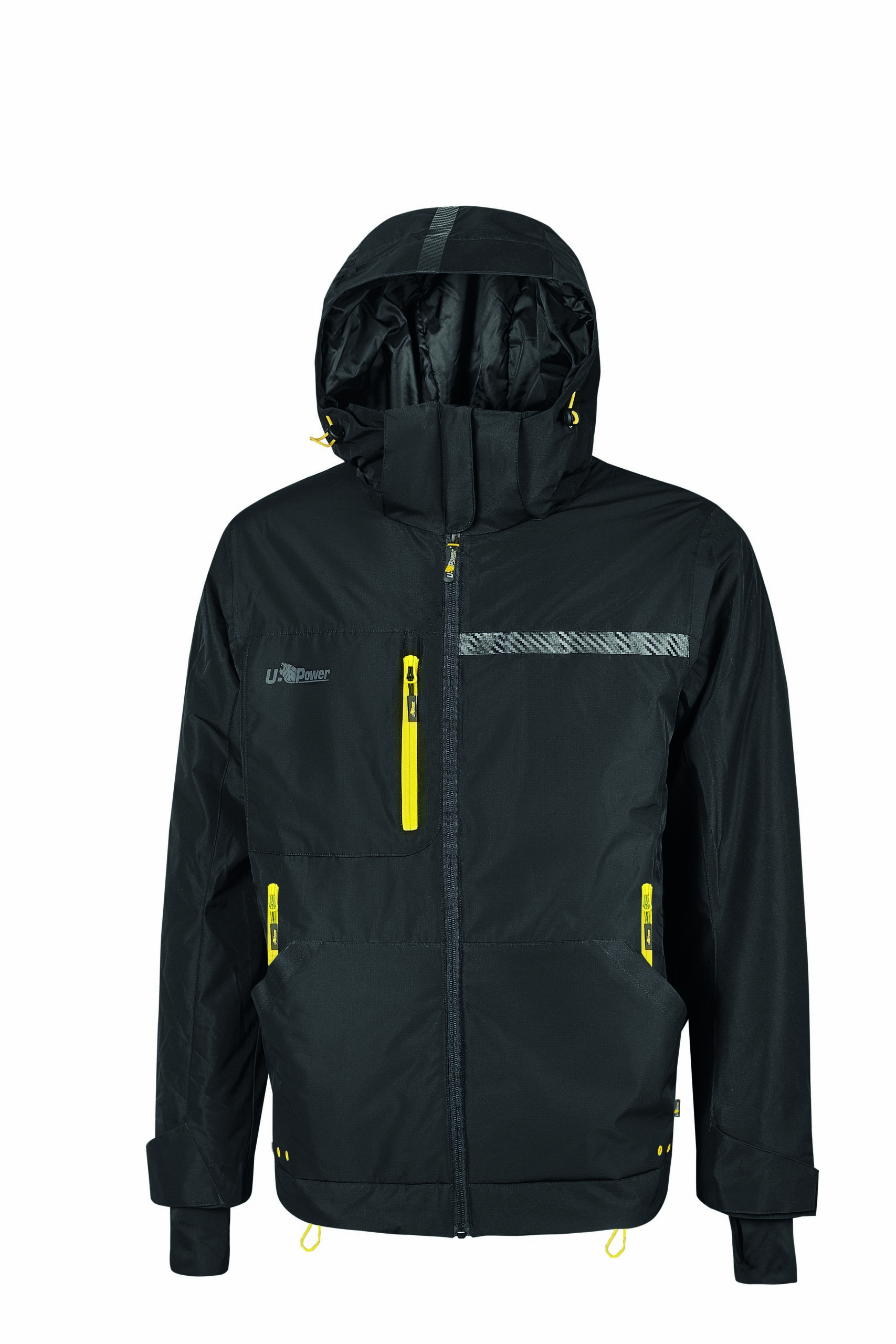 Il design di questa giacca tecnica da lavoro è arricchito dalla presenza di una banda reflex sul petto lato sinistro e sul cappuccio, dalla stampa logo reflective “U-Power” sul lato destro del petto e dalla stampa “U-Supremacy” sulla schiena.