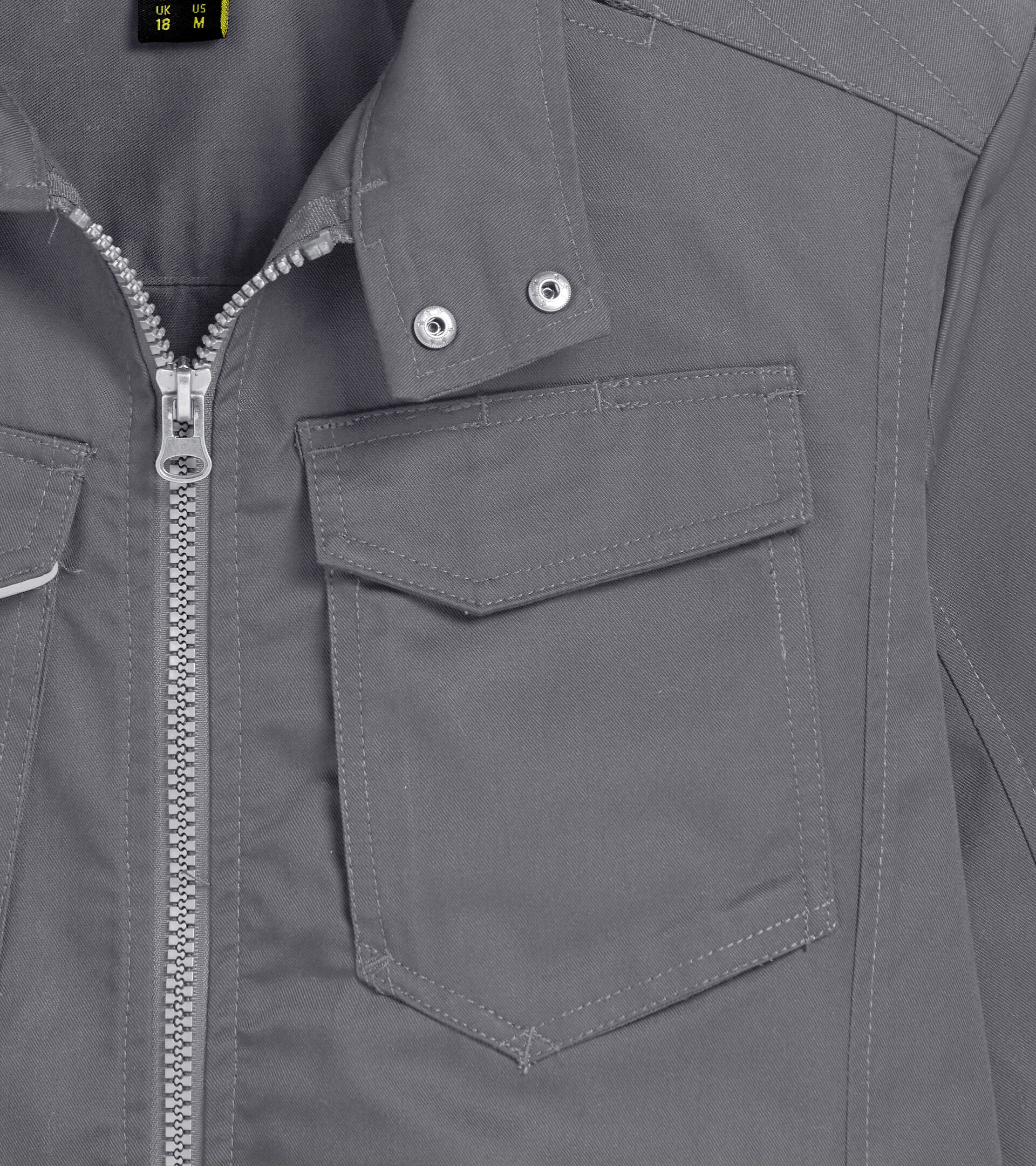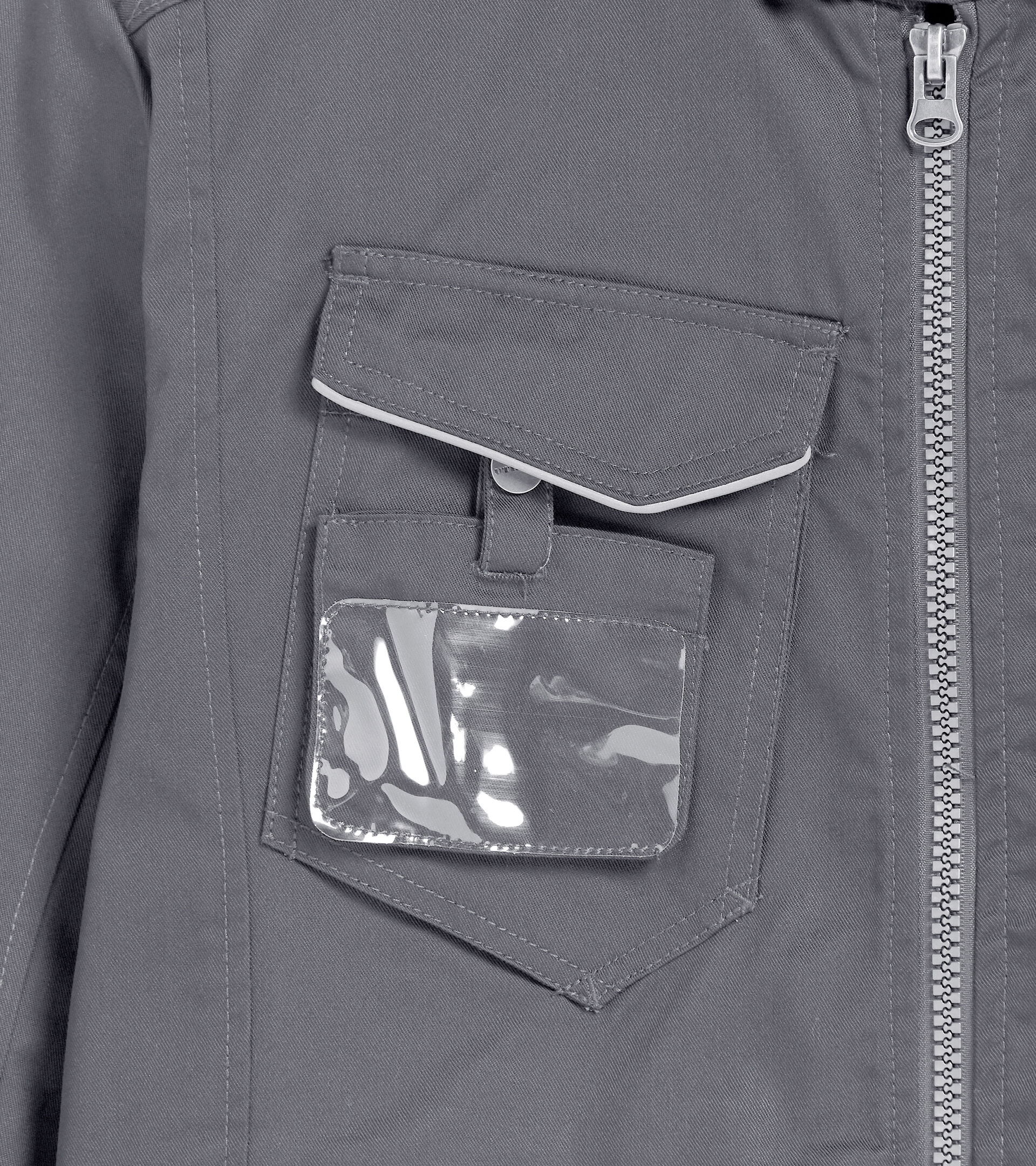 Giacca multipockets collo coreana, regolabile in vita e polsi, porta badge, dettagli rifrangenti, tasche mani zippate, tasca interna, tripla cucitura e taglio manica ergonomico.