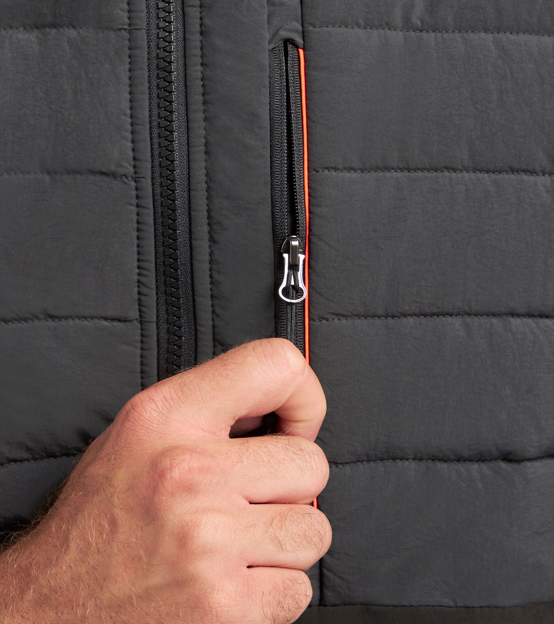 Gilet bimateriale imbottito leggero e idrorepellente.