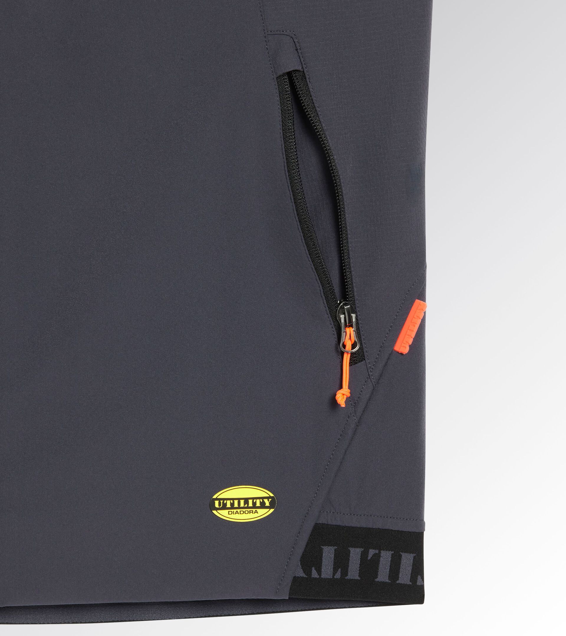 Gilet in tessuto elasticizzato con trattamento idrorepellente. Collo in piedi con inserto salvabarba. Elastico sul fondo posteriore con personalizzazione Utility per miglior vestibilità. Inserti in Ripstop stretch per una maggiore resistenza. Due tasche laterali e una tasca frontale con zip e stampa termonastrata personalizzata Utility. Apertura sul carrè posteriore per una traspirabilità ottimale. Dettagli fluo.