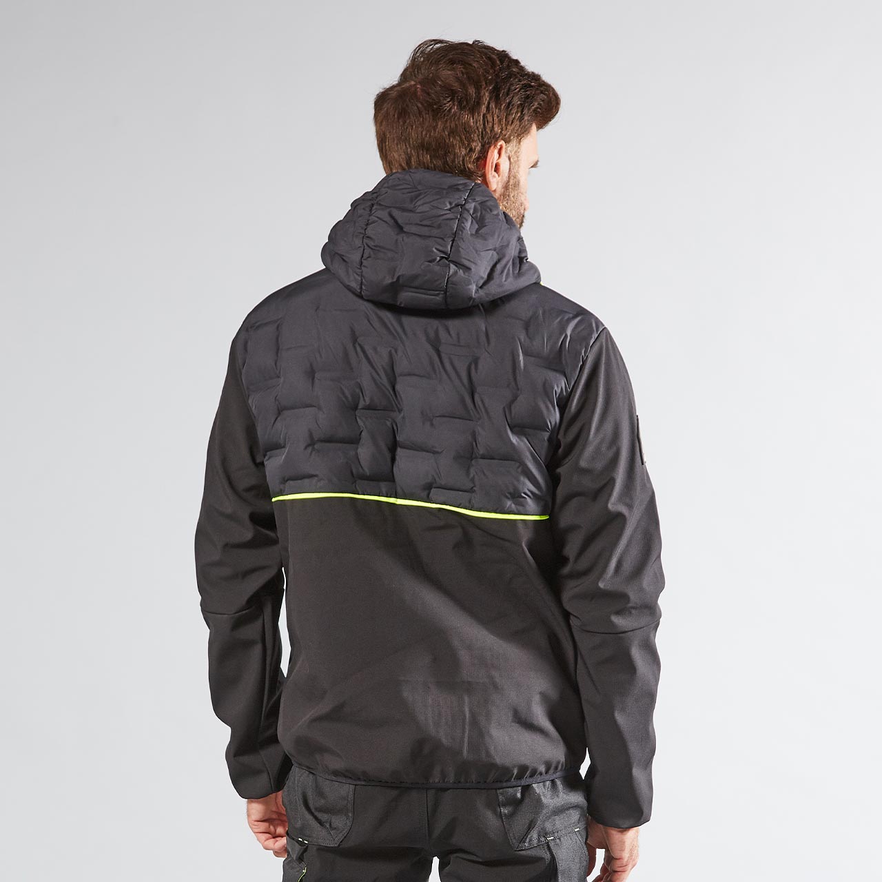 Giacca ibrida traspirante e antivento estremamente versatile e ideale per chi svolge lavori dinamici in ambienti freddi o medio temperati senza però rinunciare alla libertà di movimento. Chiusura centrale con zip impermeabile. Cappuccio fisso e regolabile, polsini elasticizzati. Piumino trapuntato con tecnologia seamless. Fodera interna in nylon e micropile con stampa serigrafica. Dotato di due ampie tasche frontali chiuse con zip fluo e una tasca sul petto chiusa con zip impermeabile. Due ampie tasche interne. Fondo sagomato e piping fluo su schiena. Logo U-Power tono su tono.