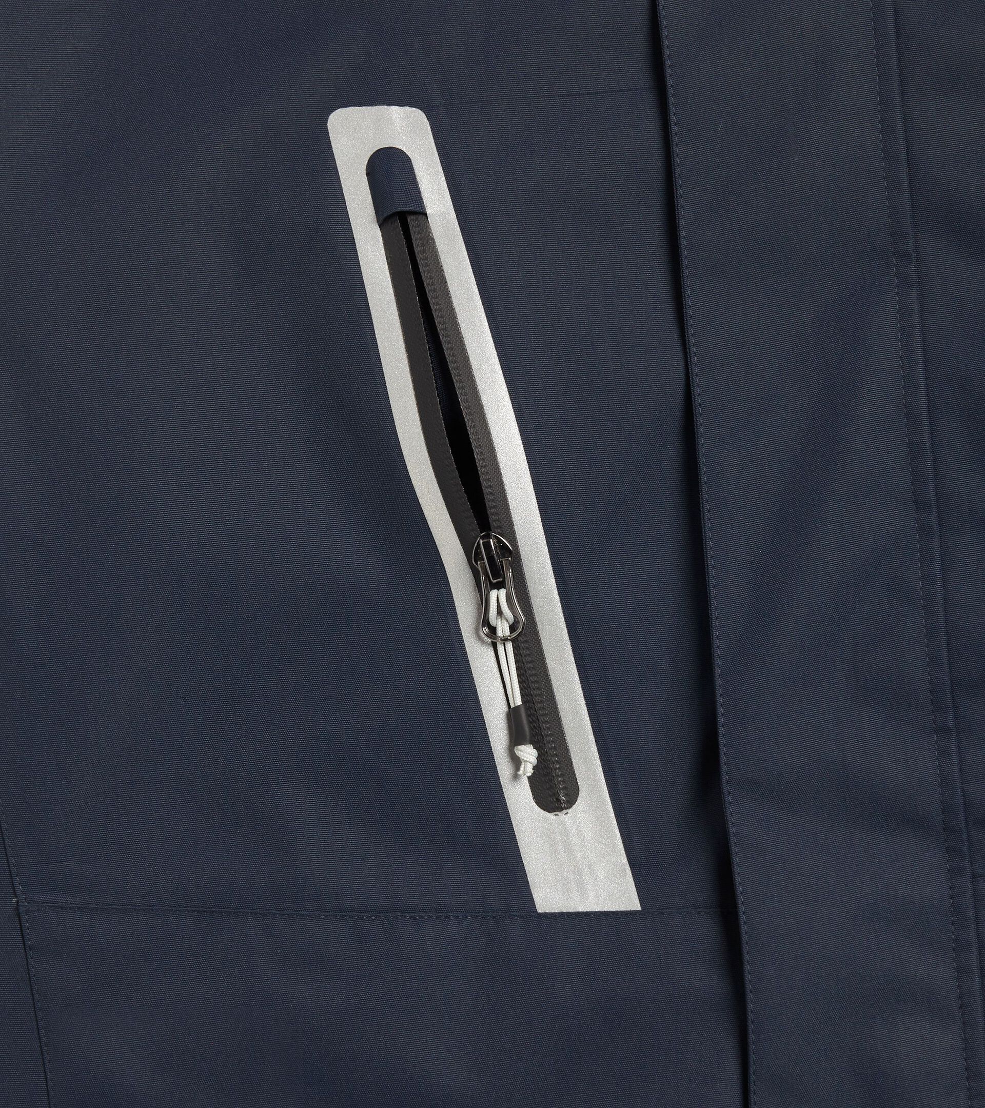 Giacca imbottita antipioggia certificata EN343. Cappuccio staccabile con tripa regolazione con doppio velcro e frontino sagomato. Due tasche laterali e tasca frontale con zip. Tre tasche interne, due con velcro e una con zip. Manica egonomica e regolazione del polsino con velcro. Parte posteriore allungata per una migliore vestibilità. Zip termonastrate e dettagli reflex e fluo.
