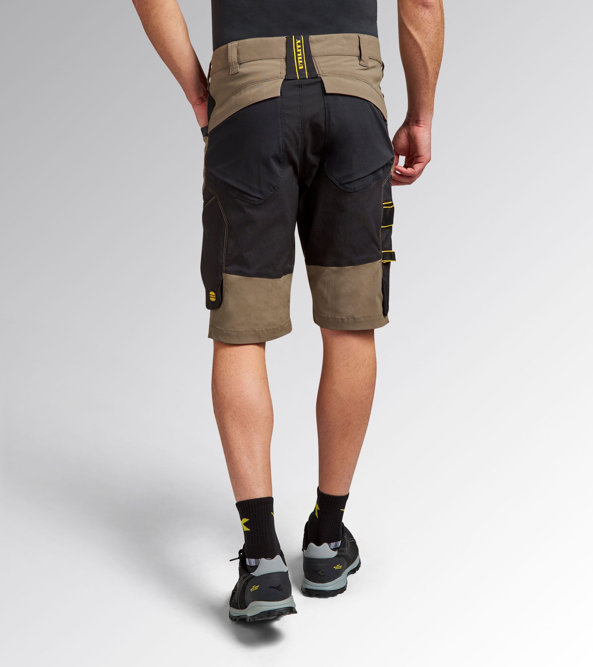 Bermuda multimateriale elasticizzato(con trattamento Wicking). Cintura sagomata con elastico a scivolamento interno per una maggior adattabilità e comfort. Due tasche superiori aperte con rinforzo in materiale Ripstop. Tasca laterale multiaccessoriata con porta metro, porta martello con loop regolabile. Tasca laterale cargo con zip. Due tasche posteriori in materiale antiabrasione chiuse con velcro. Tassello sul cavallo per favorire la mobilità. Trattamento wicking 3M™ SCOTCHGARD™ per asciugatura rapida.