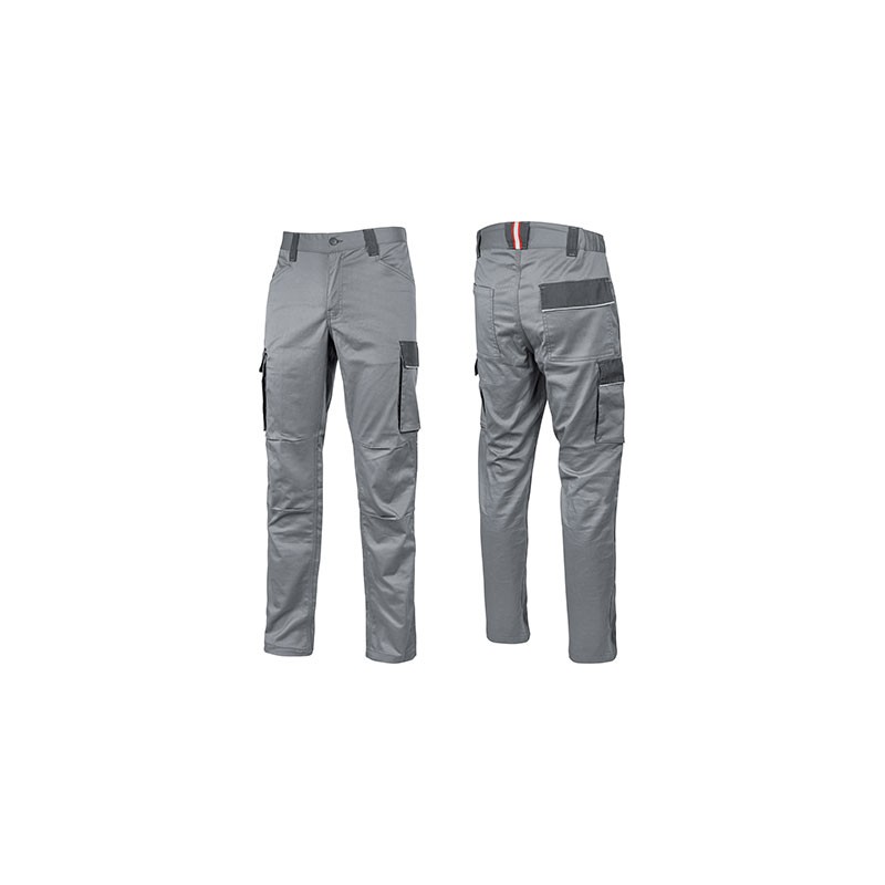 Pantalone da lavoro cargo in TC stretch dotato di due ampie tasche multifunzionali laterali, 2 tasche anteriori, 2 tasche posteriori di cui una con pattina e una con chiusura di sicurezza a velcro. Rinforzo in poly-oxford su tasche laterali, elastico in vita, profili reflex su pattina tasche laterali e pattina tasca posteriore. Carré posteriore accentuato per una maggior protezione della parte lombare. Ginocchia pre-formate per un maggior comfort. Nastro rosso/reflex su passante tubolare posteriore. Triple cuciture. Chiusura centrale con zip e bottone antigraffio.