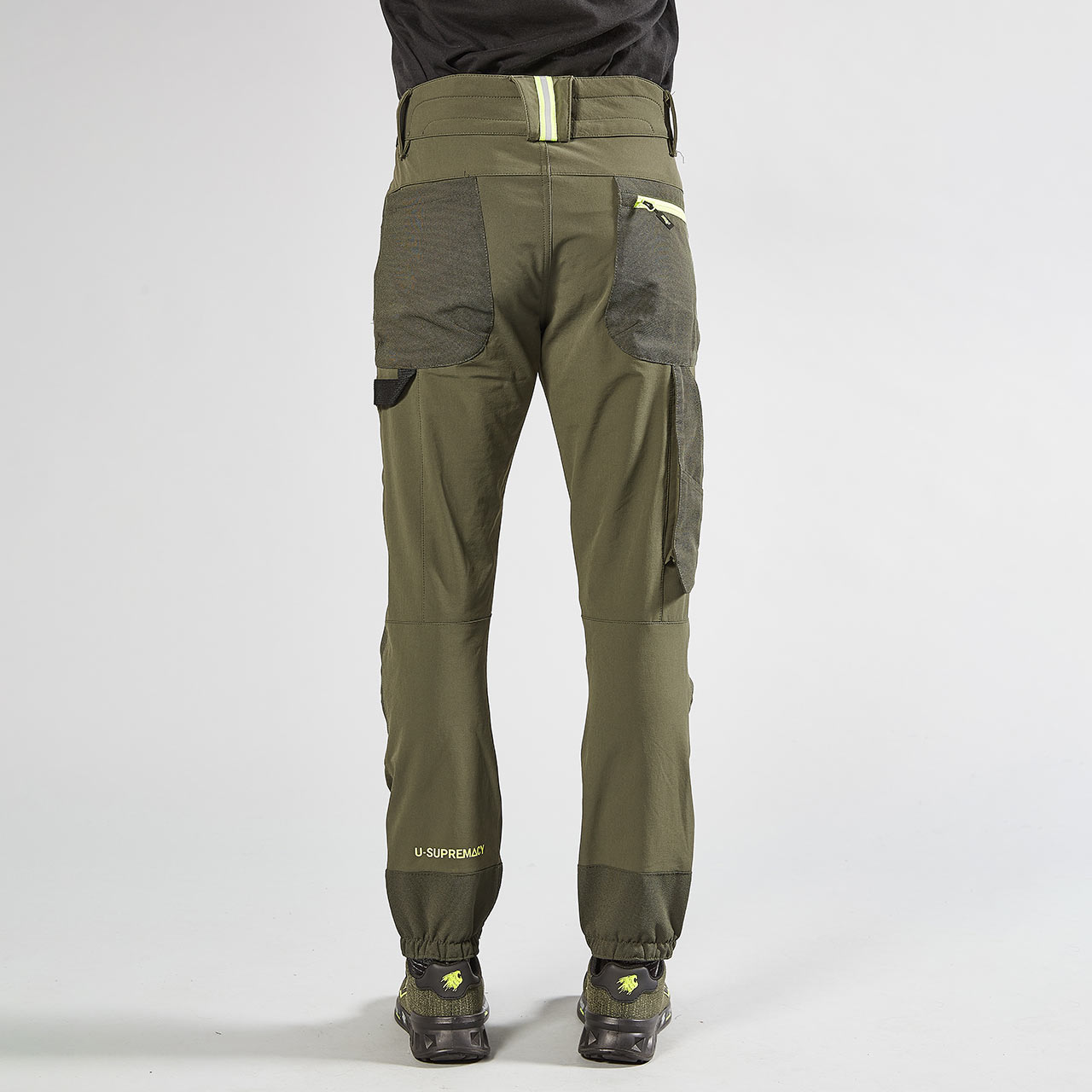 Pantaloni da lavoro stretch in tessuto U-4 con vestibilità jogging e inserti elasticizzati in vita e sul fondo per offrire una migliore vestibilità.