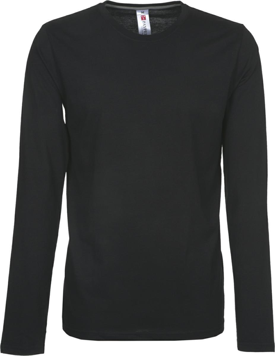 T-shirt girocollo PINETA manica lunga colore Nero, colletto in costina misto spandex da 1.5 cm con cucitura ribattuta sul davanti, maniche corte e strette, vestibilità più precisa e nastro di rinforzo da spalla a spalla in colore a contrasto visibile nel colletto, struttura tubolare.