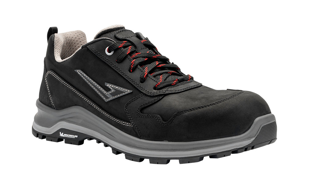 Scarpa antinfortunistica s3 bassa in pelle leggera e confortevole con suola esclusiva Michelin Arrow gomma HRO e puntale in composito.