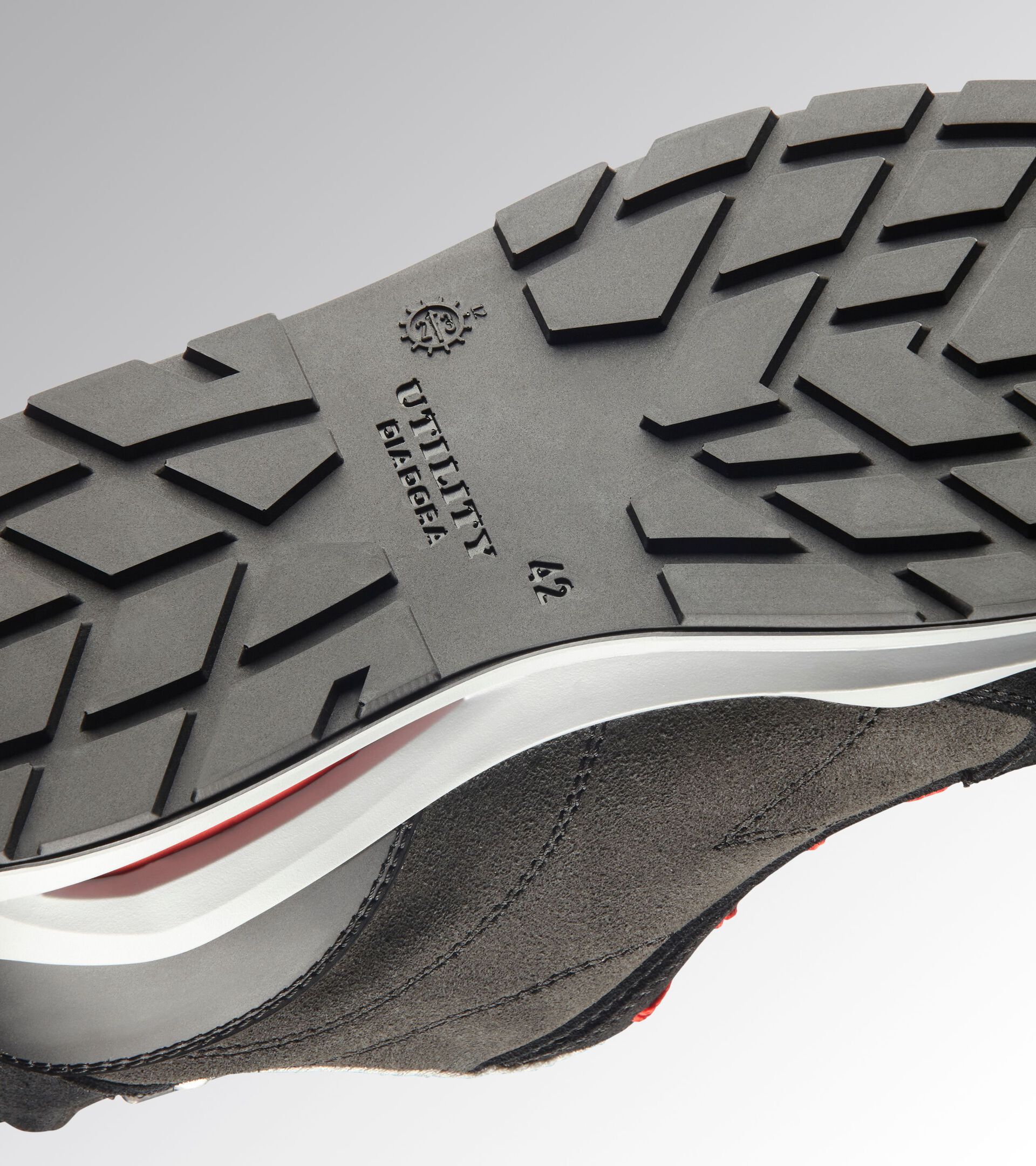 Calzatura di sicurezza bassa S3S in crosta scamosciata italiana idrorepellente con sistema di traspirazione laterale Net Breathing Sistem by Geox. Innovativo sistema di traspirazione sviluppato dai laboratori Geox che assicurano il massimo della traspirabilità e del comfort. Le loro ricerche hanno compiuto l'invenzione di una speciale membrana costituita da un materiale microporoso, capace di assorbire il sudore sotto forma di vapore acqueo e di espellerlo attraverso la suola forata. La membrana impermeabile e traspirante consente ai piedi di respirare senza far entrare l'acqua. In questo modo si permette la naturale termoregolazione e si crea il microclima ideale all'interno della calzatura, mantenendo il piede asciutto e sano. La termoregolazione è garantita anche nelle condizioni climatiche più calde e durante le attività lavorative più intense. Alla speciale membrana Geox Diadora ha associato la presenza di fori laterali che assicurano la massima traspirazione del piede in totale armonia con gli elementi di protezione che compongono la calzatura. Puntale in alluminio 200J. Calzata 11.K SOLE, fodera Nylon e antiabrasione e ultratraspirante, plantare estraibile traspirante con carboni attivi. Dalla ricerca Diadora nasce MASS DAMPER e D-LIGHT la nuova frontiera dell'antinfortunistica.
