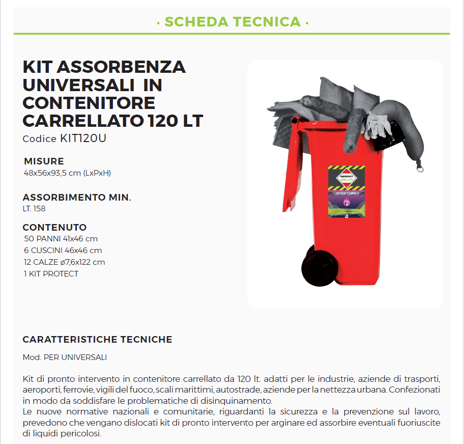Kit di pronto intervento in contenitore carrellato da 120 lt.